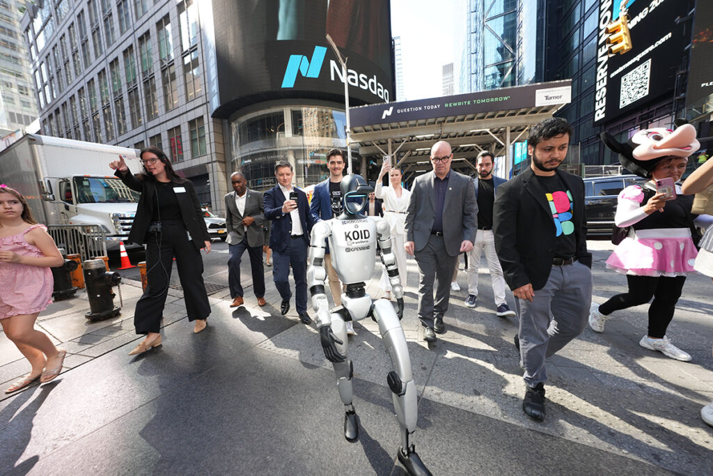 Pictured Above: A humanoid robot walks through Times Square in New York City.