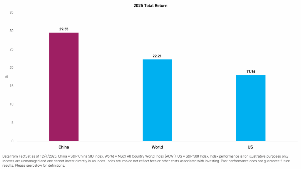 In 2025, international markets overall bucked the decade-long trend, outperforming the US. And, after years of macro-driven declines, China led this outperformance. We believe this could herald the beginning of a new normal in global markets, which could be sustained over multiple years.