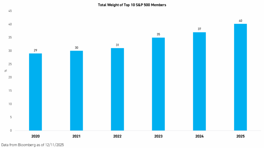 AI-led market performance has been concentrated in the Magnificent Seven and a handful of core infrastructure beneficiaries. Many investors today are grappling with the risk of concentration.