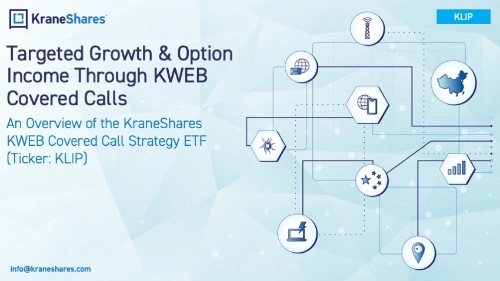 The KraneShares KWEB Covered Call Strategy ETF (ticker: KLIP) follows a “covered call” or “buy-write” strategy. KLIP buys shares of the KraneShares CSI China Internet ETF (ticker: KWEB) and “writes” or “sells” corresponding call options on KWEB. Both KLIP and KWEB are benchmarked to the CSI Overseas China Internet Index, which tracks the performance of the investable universe of publicly traded China-based companies in the Internet sector. KLIP can generate option income.